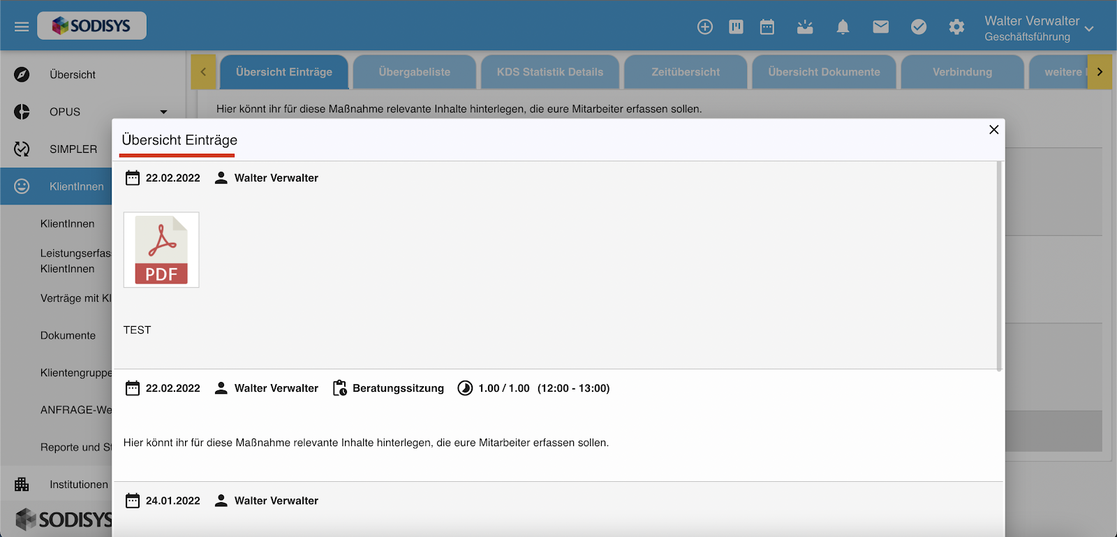 - Eigene angelegte Felder sind nun in der Klientenliste + Leistungserfassung als Filter auszahlbar und bleiben auch beim verlassen der Seite bestehen. (So kann man hintereinander unterschiedliche Einträge betrachten ohne den Filter neu setzen zu müssen)